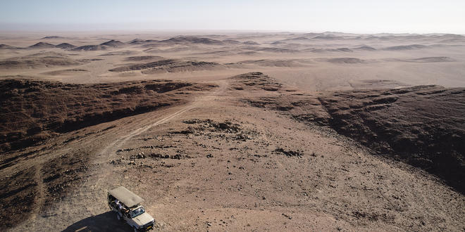 Vom Okahirongo Elephant Camp werden Pirschfahrten zu den seltenen Wüstelefanten und zu den Nashörnern der Wüste angeboten.