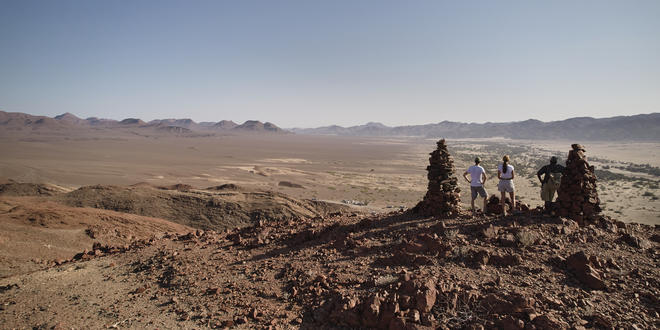 Wenn Sie diesen extrem abgelegenen Ort im Puros Conservancy erreichen, werden Sie mit einer faszinierenden Lebenslandschaft belohnt. Sie können sogar an die Wüste angepasste Elefanten vom Sonnendeck oder Pool der Lodge aus beobachten. Die erfahrenen Himba-Guides begleiten Sie auf morgendlichen Wanderungen oder Pirschfahrten am Nachmittag, um einer Reihe von Wildtieren der Wüste zu begegnen: die emblematischen Elefanten und Löwen, die ikonische Giraffe, das Hartmann-Bergzebra und eine Vielzahl von Antilopen: Gemsbok, Springbock, Steenbok und Kudu mit ihren ungewöhnlich gestreiften Flanken und Mähnen und die markanten Spiralhörner der Männchen. Vogelbeobachter werden nach einheimischen und exotischen Arten Ausschau halten, von großen und tödlichen Geiern bis hin zu empfindlichen Bienenfressern, dem unverwechselbaren Rüppell's Korhaan und Monteiros Nashornvogel.